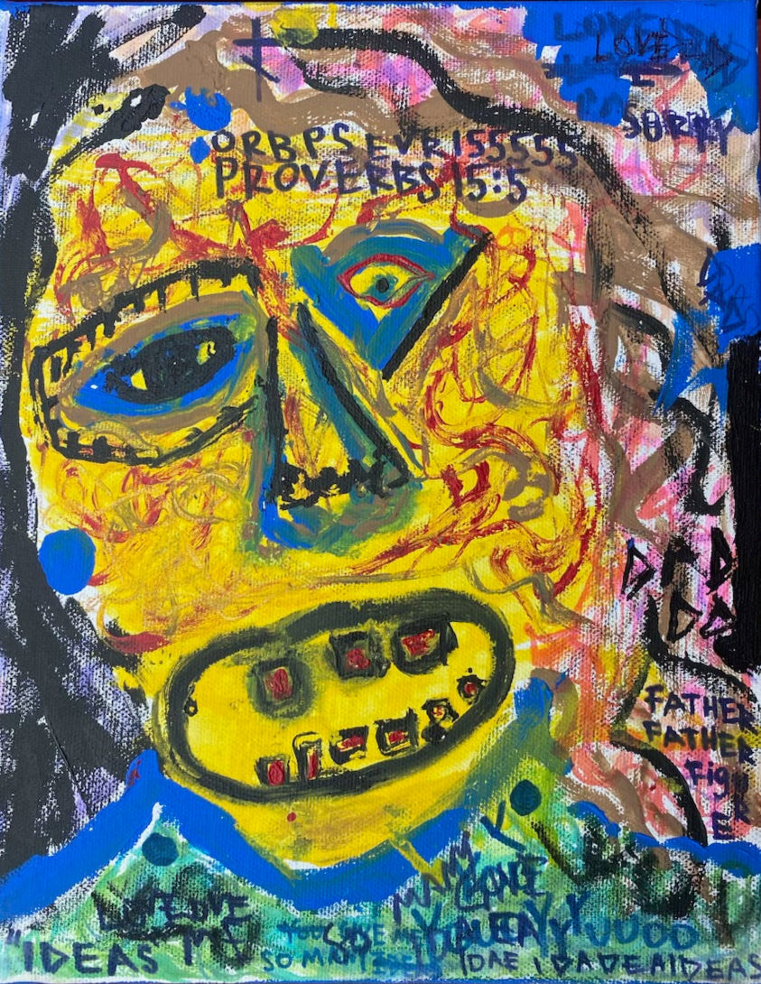 Canvas 9x12in Acrylic, Tempura Paint Stick, Sharpie, Crayon
